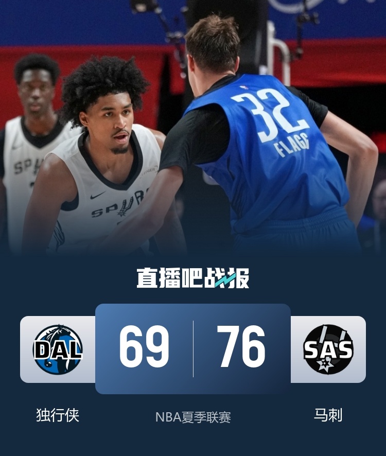 比赛开始,凯利连投带罚先拿6分,马刺多点开花迅速回应,加西亚反击得手将分差拉开到两位数,弗拉格挺身而出,内外开花连得8分带队追赶,马刺进攻哑火,独行侠奋力反击扳平比分,哈珀打成2+1稳住局势,半场战罢马刺33-32领先独行侠1分。易边再战,独行侠命中率下降,马刺内外开花重新占据场上主动,弗拉格贡献精彩暴扣,加西亚和丹尼斯联手高效拿分,末节马刺稳扎稳打保持优势,弗拉格高效输出但仍无力回天。最终,马刺76-69击败独行侠。