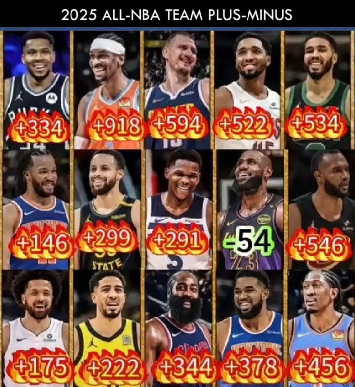 希罗、小贾伦-杰克逊和里夫斯被认为是最被高估的球员,但詹姆斯入选第二阵容且正负值排在联盟第383位,甚至比其他任何入选全明星的球员都至少低200分(如图—倒数第2布伦森为+146),这难道不是被高估吗?”