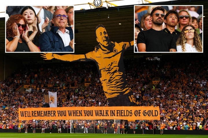 若塔的父母、妻子卢特-卡多佐,以及也曾在狼队效力过的葡萄牙球员鲁本-内维斯出席了仪式。